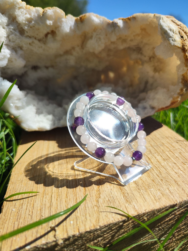 Bracelet en quartz rose et améthsyte. Il apporte de l'amour et apaise
