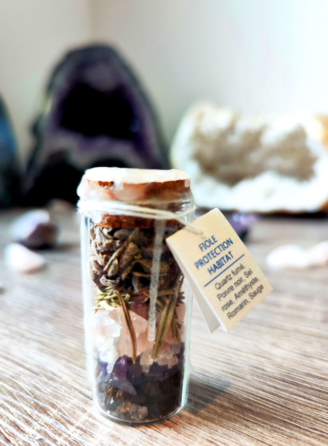 Une fiole magique, ou spell jar, renferme différentes herbes, poudres, minéraux, cristaux, plantes et énergies pour répondre à un besoin.